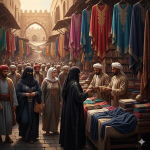 التجار في المدن اعتمدوا الأقمشة الفاخرة كالقطن والحرير، بينما فضل البدو الصوف والوبر.