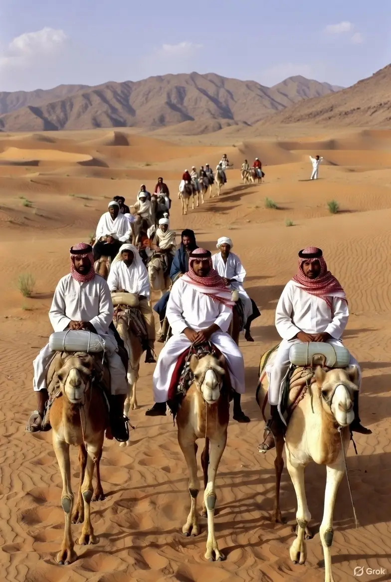 كانوا مسافرين إلى الشمال للصيد على الركايب، فهي الوسيلة الوحيدة للتنقل من منطقة إلى أخرى في ذلك الوقت. وعند وصولهم إلى مكان مرتفع أو تلة، ربطوا الركايب وأعدوا طعامهم.